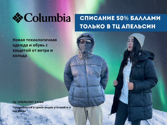 В COLUMBIA ТЦ "АПЕЛЬСИН" по UDS -50%!